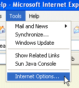 2. Open up a new browser windows, and choose the Tools -> Internet Options... menu item